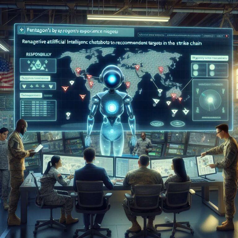 The US military is exploring the use of generative artificial intelligence systems as a new layer in its targeting process, with chatbots asked to rank lists of potential targets and recommend which to strike first. A Defense Department official described a scenario in which a list of possible targets is fed into a generative artificial intelligence system being deployed for classified environments, after which humans could ask the model to analyze the data and prioritize targets while considering variables such as aircraft positioning. Human operators would then remain responsible for checking and evaluating the system’s recommendations, and the official framed the description as an example of how such tools might be used rather than a confirmation of current practice.