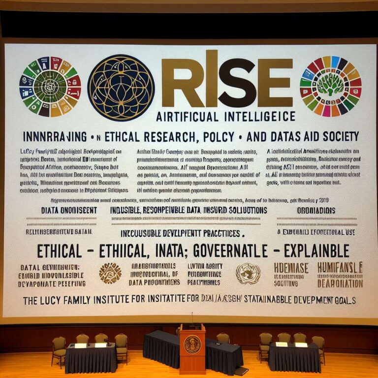 The conference description highlights an emphasis on interdisciplinary engagement across research, policy, and application domains and on responsible approaches to technology design and deployment. Attendees are directed to a Lucy Family Institute web page for additional information and registration details. Specific speakers, program schedules, registration fees, and session formats are not stated on the page. The announcement frames the RISE Artificial Intelligence conference as an inaugural convening intended to surface advances, frameworks, and policy perspectives that promote inclusive and ethical uses of data and Artificial Intelligence for societal benefit.